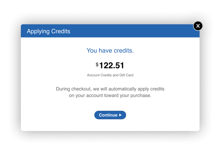During checkout, we'll notify the student if they have any funds on their account and apply them automatically to their purchase. Then, they'll just have to pay the difference.